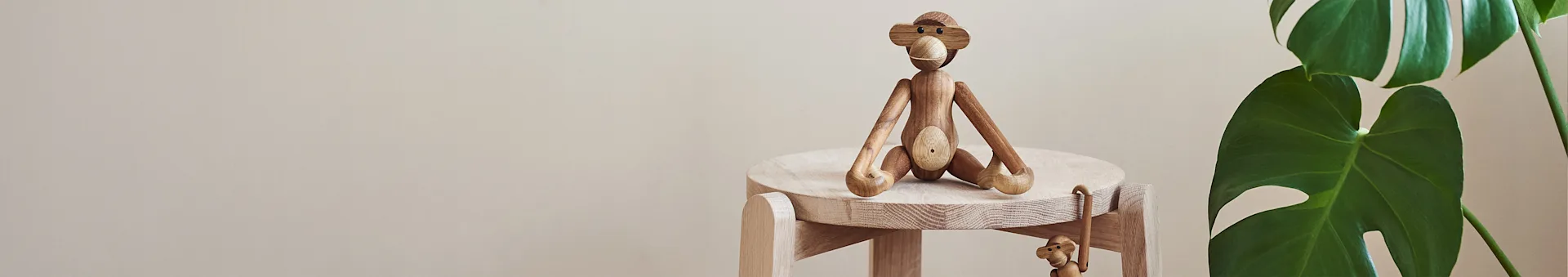 Die dänische Marke Kay Bojesen Denmark ist weltberühmt für ihre hochwertigen und originellen Holzfiguren die sowohl Tiere als auch menschliche Formen haben. Die bekannteste Holzfigur ist der berühmte Kay Bojesen Affe, der in mehreren Größen und mit verschiedenen Kopfbedeckungen erhältlich ist, sodass der Affe für jeden Anlass passend gekleidet ist.